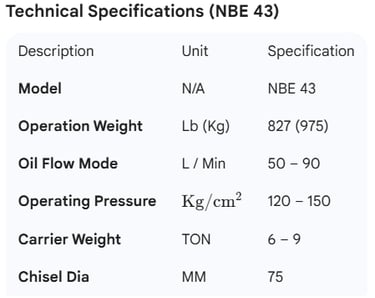 Choose the NBE 43 Hydraulic Breaker for a winning combination of power, precision, and agility. N Brand Spares provides direct support from the manufacturer, guaranteeing quality and quick access to spares.
